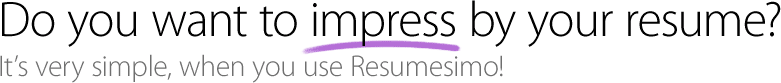 Welcome to Resumesimo.com! Owing to our service you can create your own original Resume, which will stand out from the torrent of other resumes. Nowadays it is essential to arouse attention when searching for a job. Spend a few minutes on your new resume and we can guarantee that your new job won’t keep you waiting long…